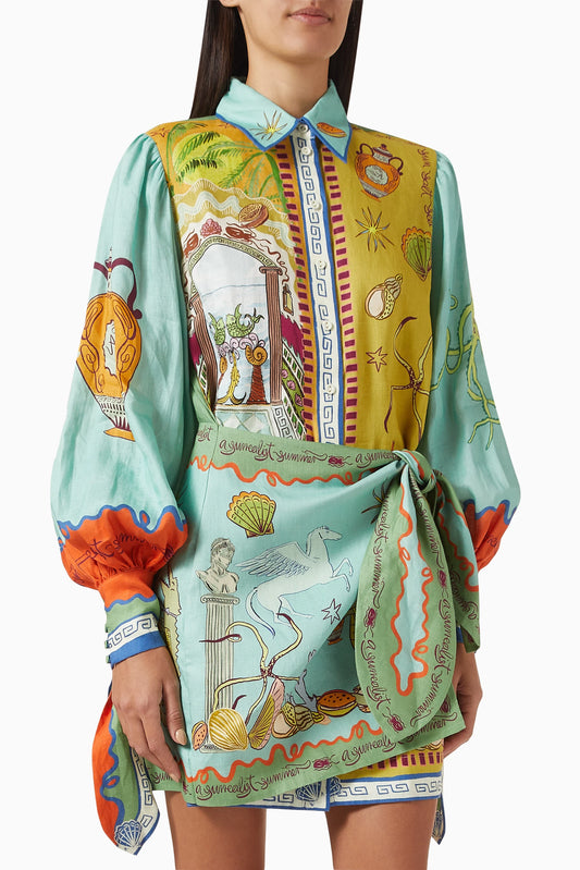 ALM Surrealist Summer Linen Shirtdress Mini Dress