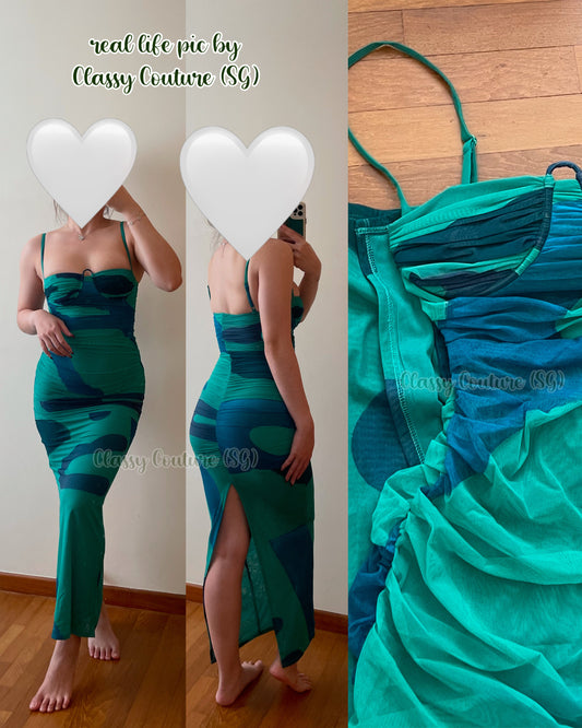 STL Breeze Striped Ruched Mesh Midi Dress