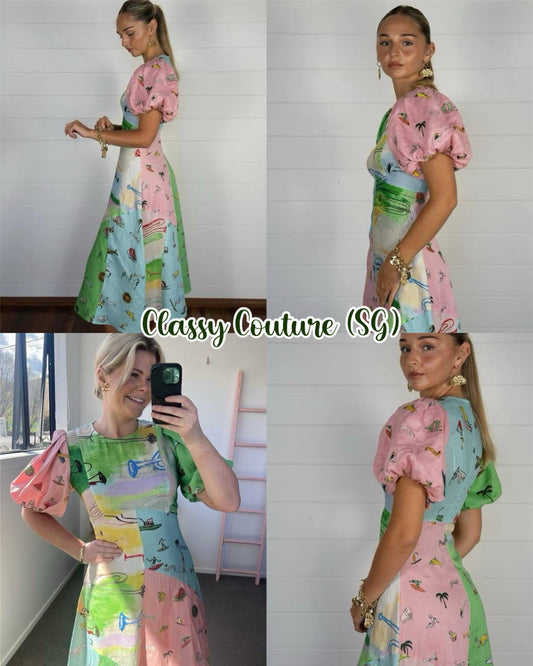 ALM Jet Puff Sleeve Linen Midi Dress