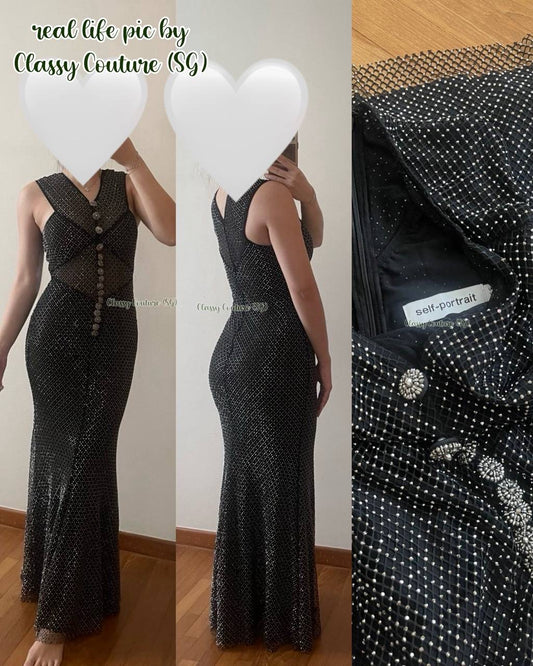 SP Black and Gold Rhinestone Mesh Cut Out Maxi Dress