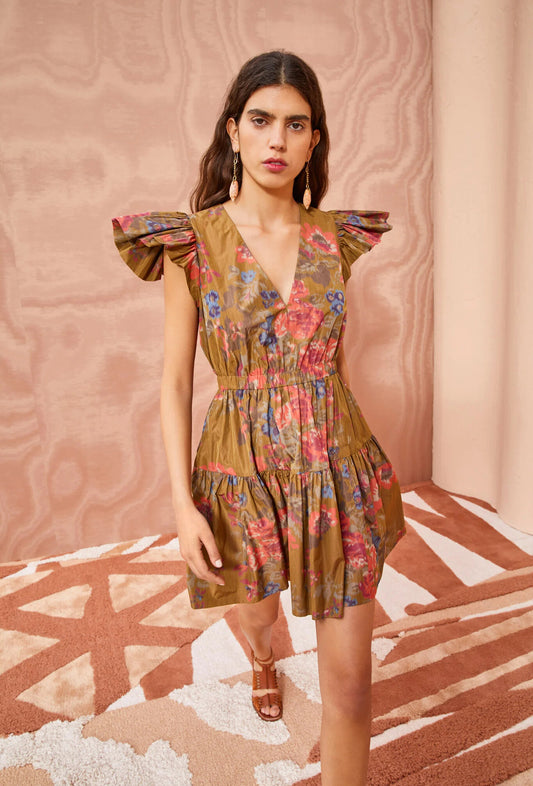 CM Cornell Cotton Long Sleeve Midi Dress in Hickory Brown