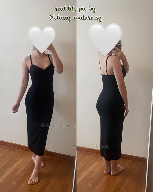 SP Black Rhinestone Lace Maxi Dress
