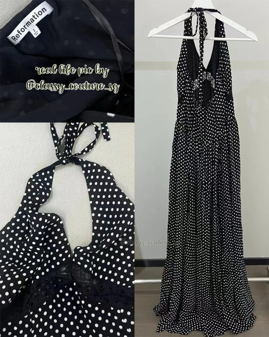 Ref Amaris Viscose Halter Maxi Dress in Caviar Dot