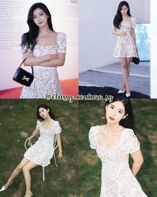 SP White Floral Lace Mini | Belted Square Neck Midi Dress
