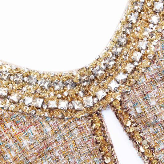SP Gold Tinsel Boucle Embellished Mini Dress