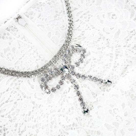 SP White Lace Diamante Mini Dress with Crystal Bow