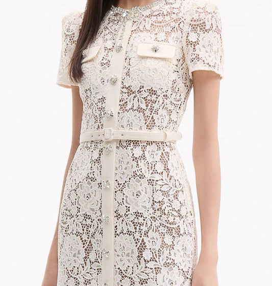 SP White Cotton Lace Hem Mini Dress Cold Shoulder