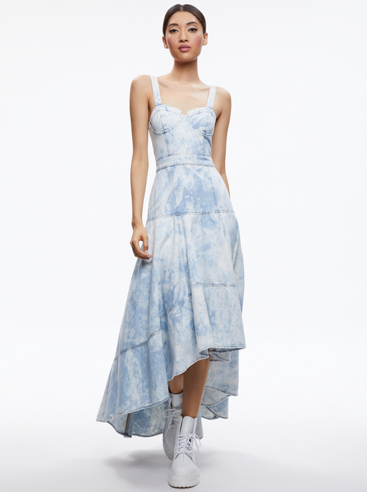 SALE! AO Donella Denim Bustier High Low Midi Maxi Dress