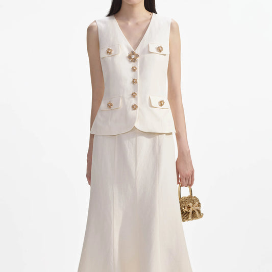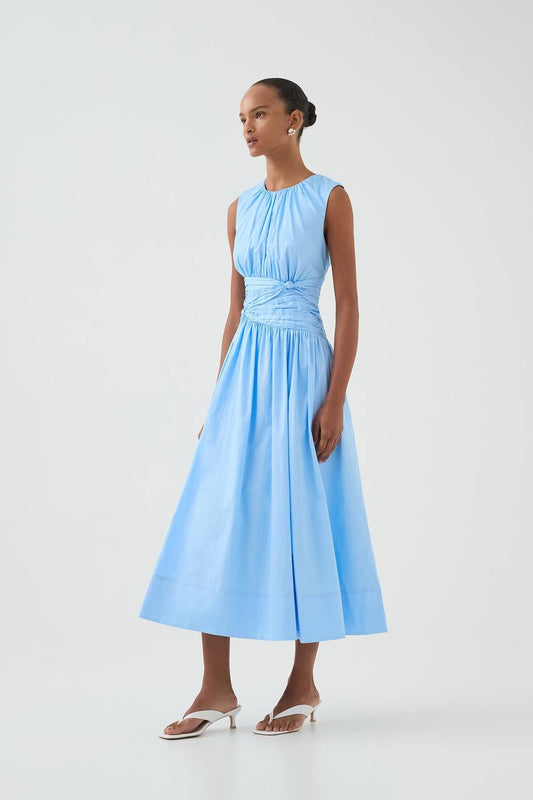 SK Arie Bandeau Pleated Cotton Midi Dress