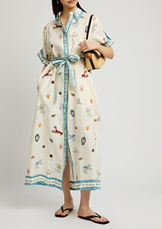ALM Sandy Embroidered Midi Dress Shirtdress