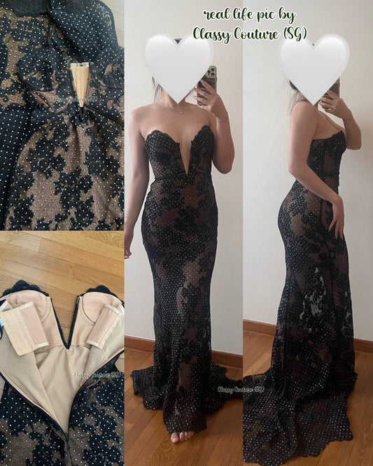 SP Black Rhinestone Lace Bandeau Mini | Maxi Dress