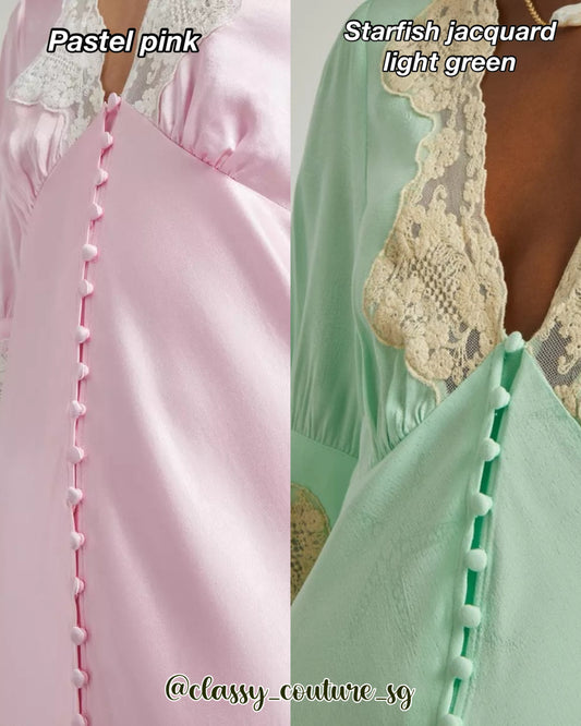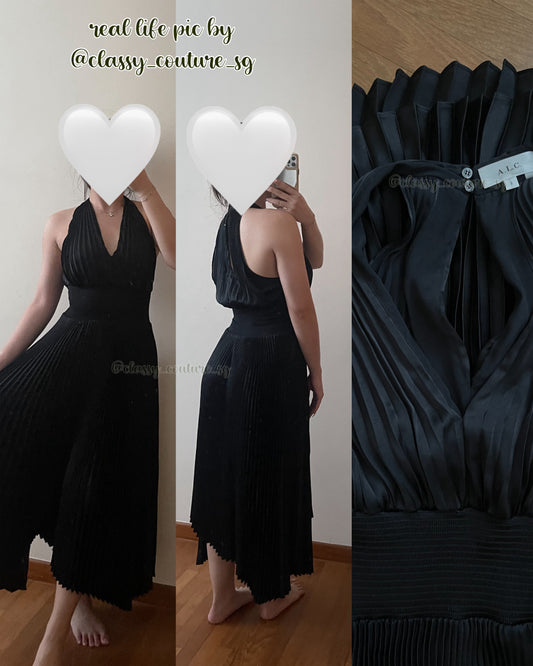 ALC Rose Satin Pleated Midi Dress in Chicory | Riviera