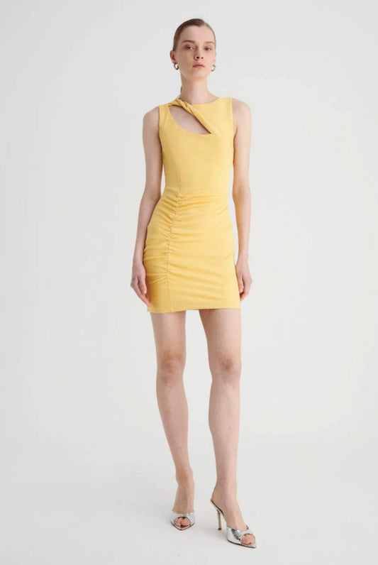 SB Vega Twist Front Mini Dress in Butter Yellow