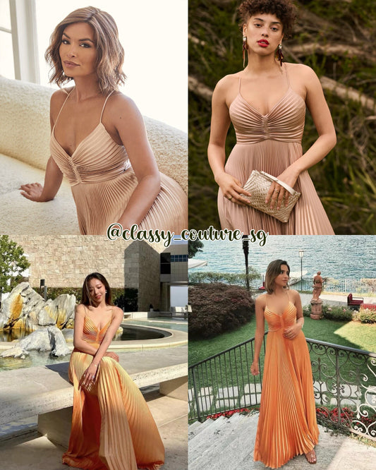 ALC Aries Pleated Maxi Dress in Bella Bronze Pink and Mandarin Orange