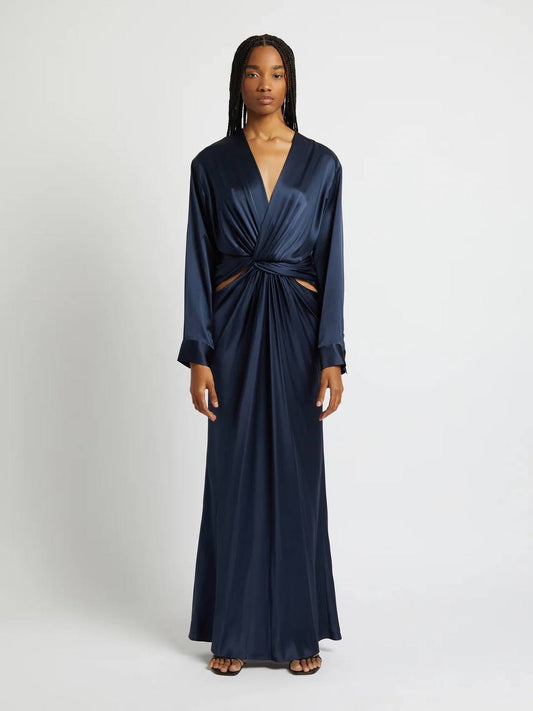 CE Triquetra Twist Maxi Dress in Ink Blue Silk