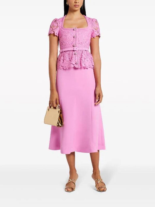 SP Floral Lace Belted Midi Dress Bubblegum Pink