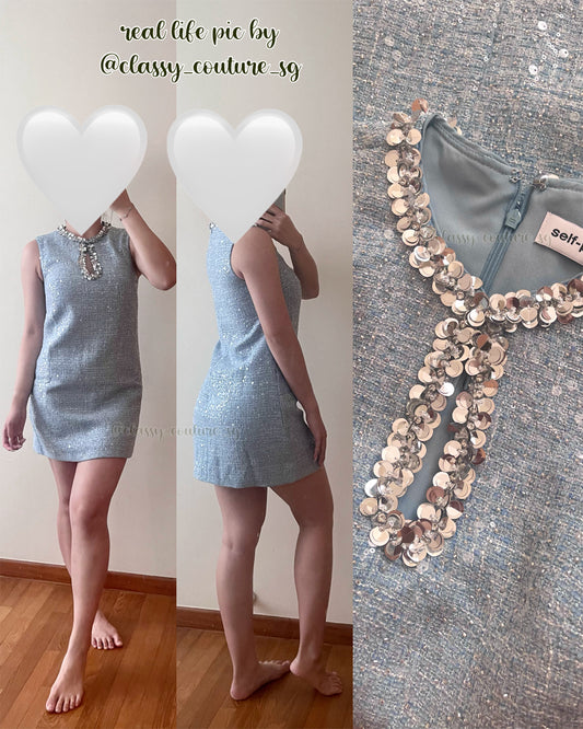 SP Blue Sequin Boucle Mini Dress