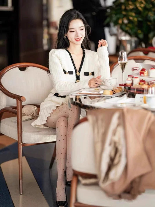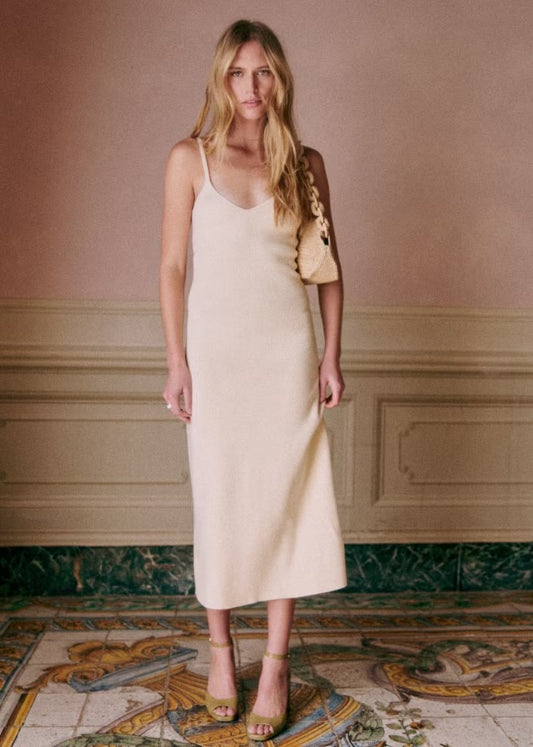 SP Contrast Stitch Ribbed Knit Midi Dress in Ivory White