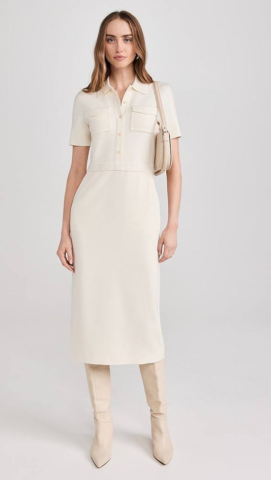TH Military Merino Wool Blend Crepe Midi Dress
