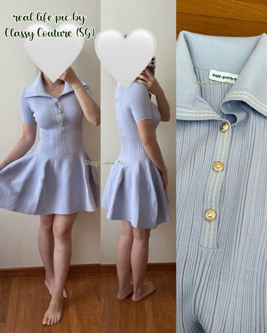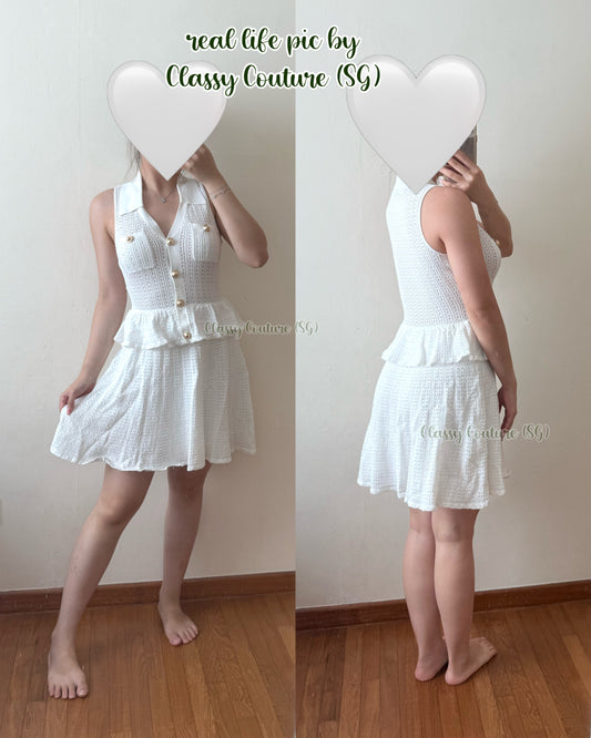 SP Pointelle Knit Collared Mini Dress in White & Black