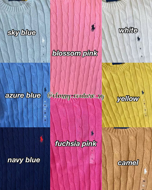 RL Cable Knit Crew Neck Short Sleeve Jumper Top