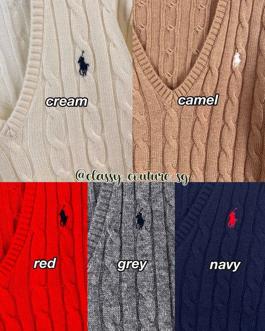 RL Cable Knit Wool Cashmere V Neck Jumper