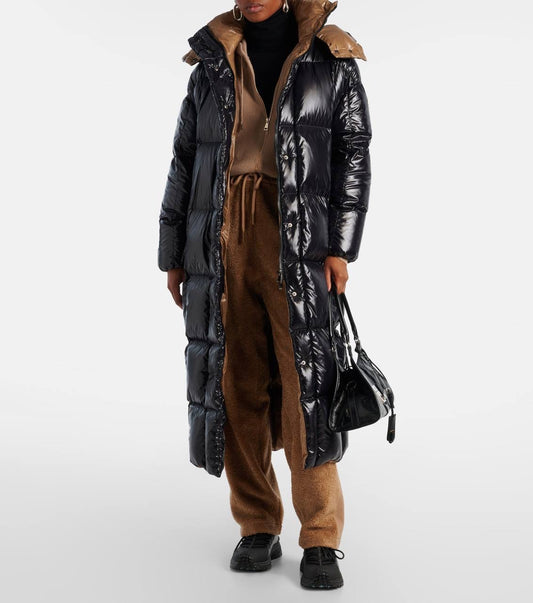 MC Brou Diagonal-Quilted Belted Long Down Jacket