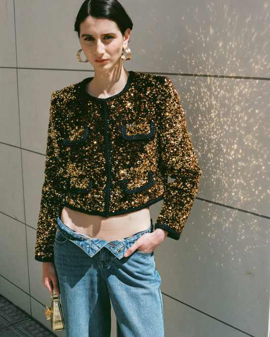SP Embellished Crystal Cropped Sweater Jumper in Grey Argyle & Cream