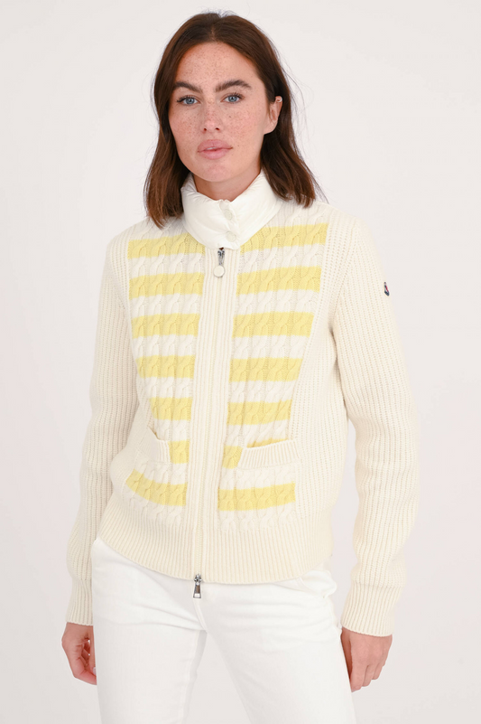 MC Padded Striped Wool Zip Up Cardigan (Partially Down-filled)
