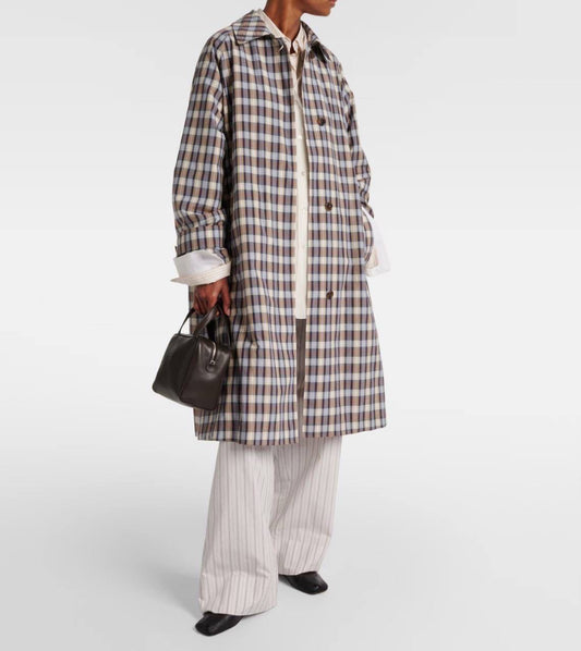 TR Tavishina Checked Silk-Cotton-Blend Poplin Coat