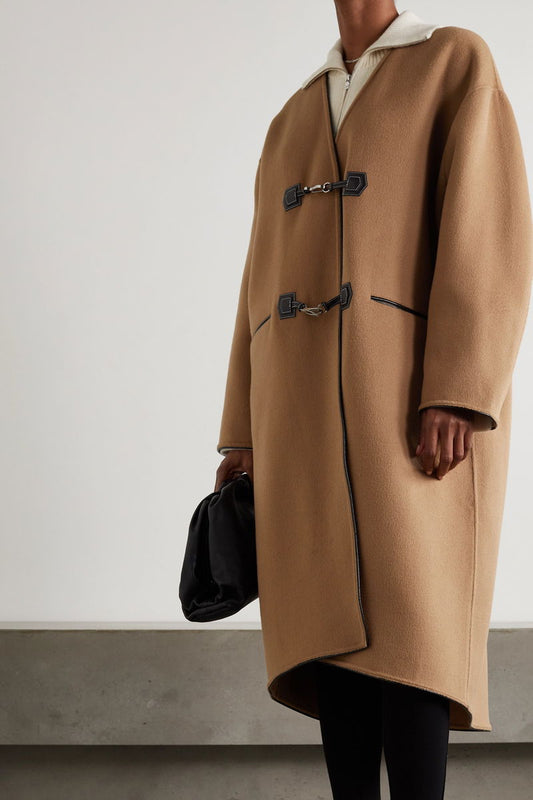 SALE! Tot Clasp Leather-Trimmed Brushed Wool And Cashmere-Blend Coat