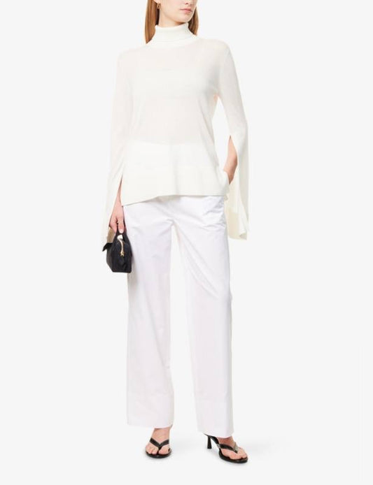 Tot Slit Sleeve Lyocell-Cashmere Turtleneck Blouse Sweater