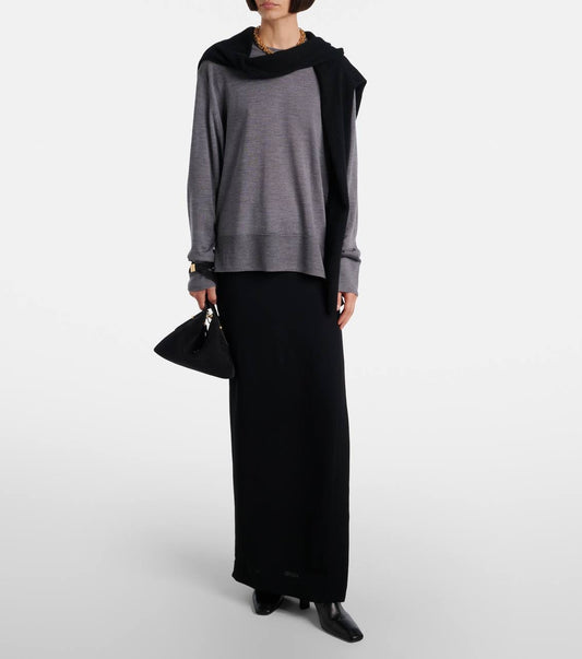 Tot Crew-neck Wool-Silk Fine Knit Sweater Pullover