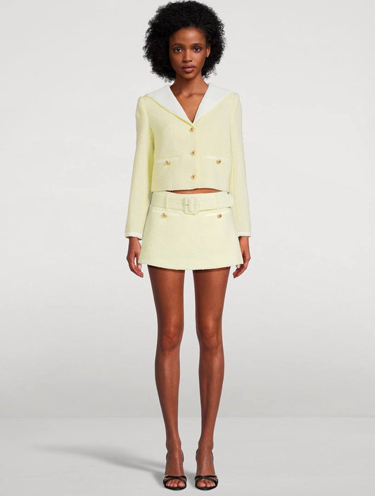 SP Boucle Contrast Collar Cropped Jacket | Tweed Skort | Yellow & Navy Set