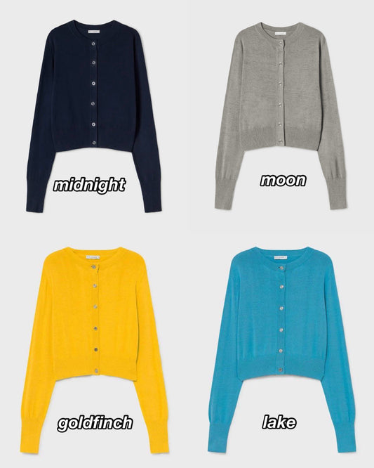 SL Cropped Silk-Cotton Cardigan in Moon | Midnight | Goldfinch | Lake