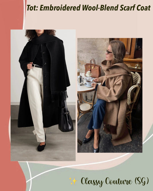 3 Colors! Tot Embroidered Wool-Blend Scarf Long Coat