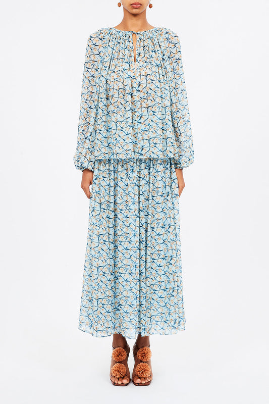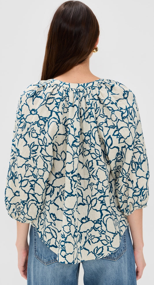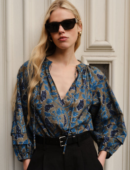 AA Tule 3/4 Sleeve Cotton Blouse Top in Malene Floral Olive