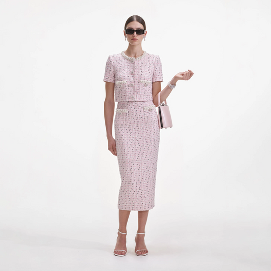 SP Pink Boucle Pearl Crop Top | Midi Skirt | Set