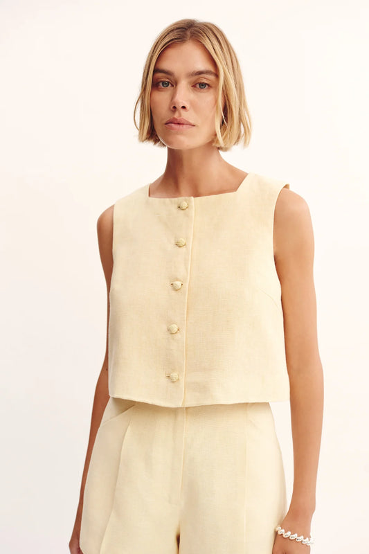 STL Primrose Linen Ruched Sleeveless Asymmetric Cami Top