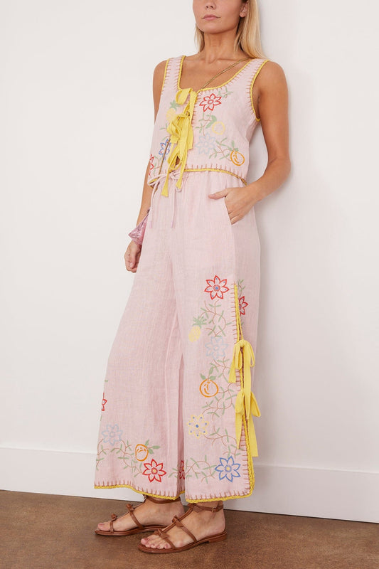 ALM Olivia Embroidered Linen Crop Top | Pants | Set