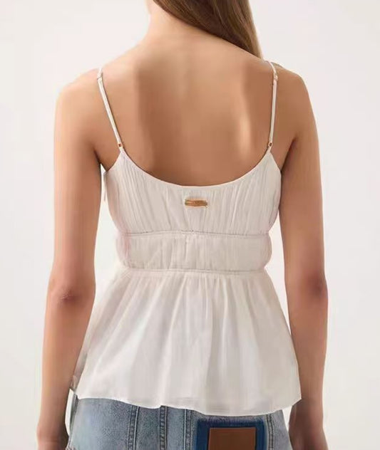 AJ Acapella Ruched Cotton-Viscose Top in Ivory