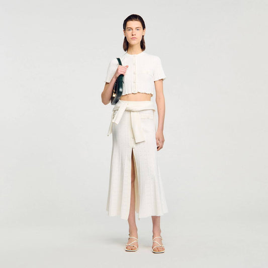 SD Nice Pointelle-Knit Cropped Cardigan Top | Venice Midi Skirt | Set