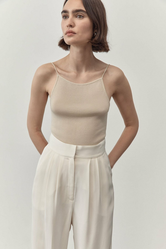 SJ Sara Tailored Fitted Vest | Blazer | Utility Relaxed Pant | Crema white, Tapenade | top pants set