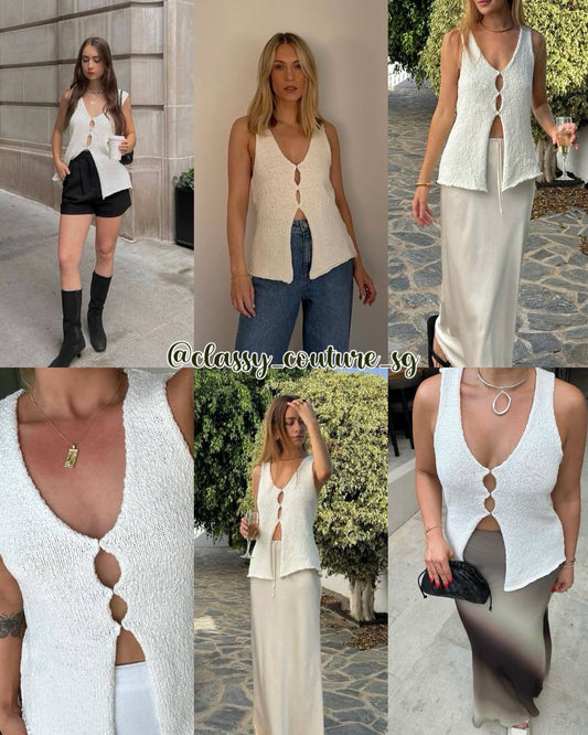 DSH Dion Cotton Boucle Knit Vest Top in White & Black