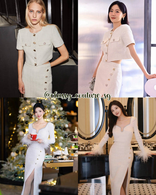 SP Cream Boucle Crop Top | Midi Skirt | Set