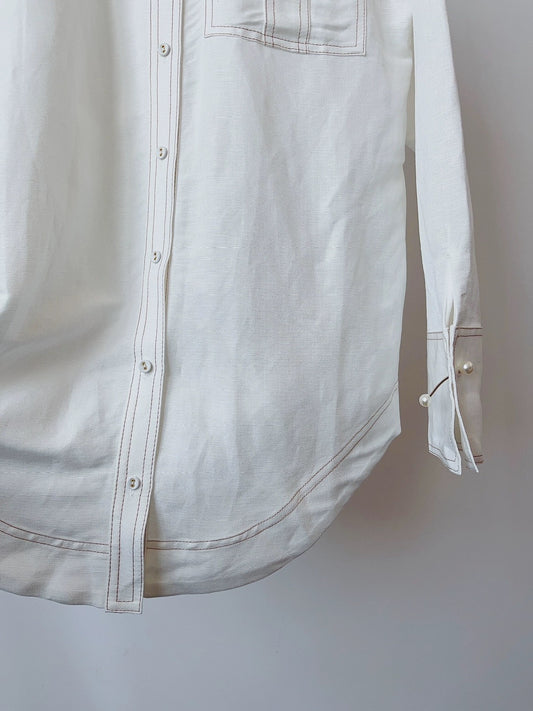 AJ Satori Pearl Pin Shirt | Long Sleeve Linen-blend Top