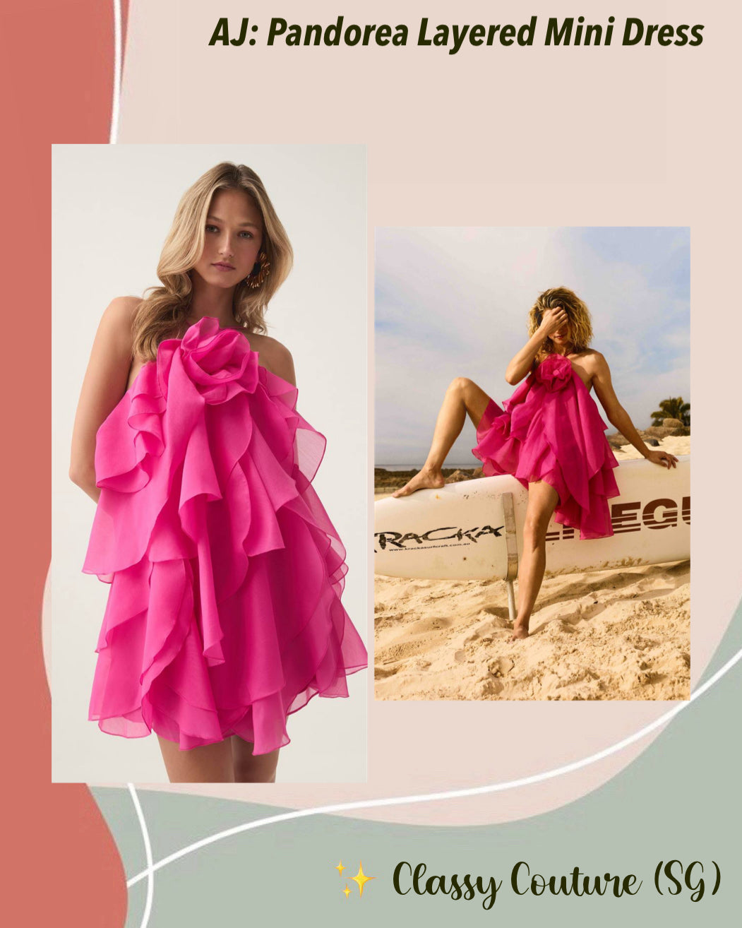 AJ Pandorea Layered Mini Dress in Fuchsia Rose