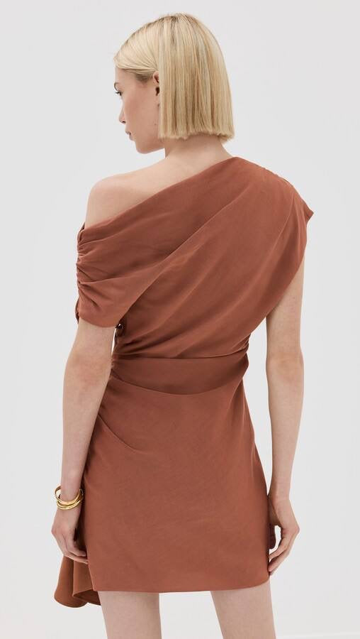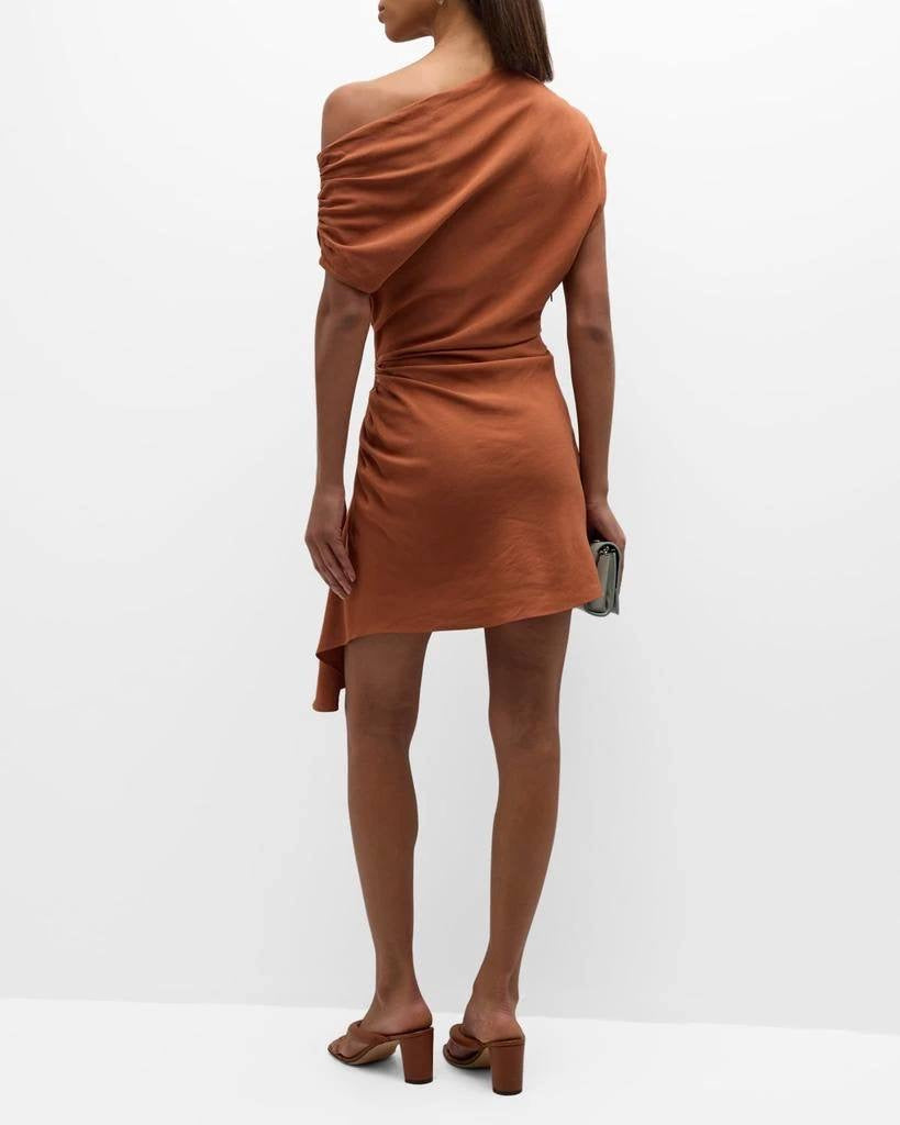 ALC Poppy Viscose-Linen One Shoulder Ruched Mini Dress