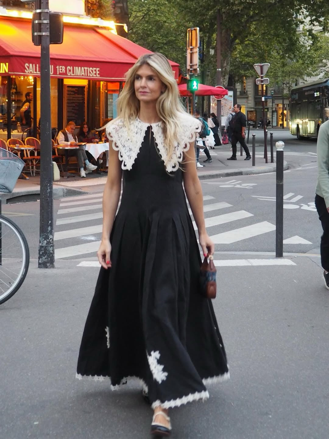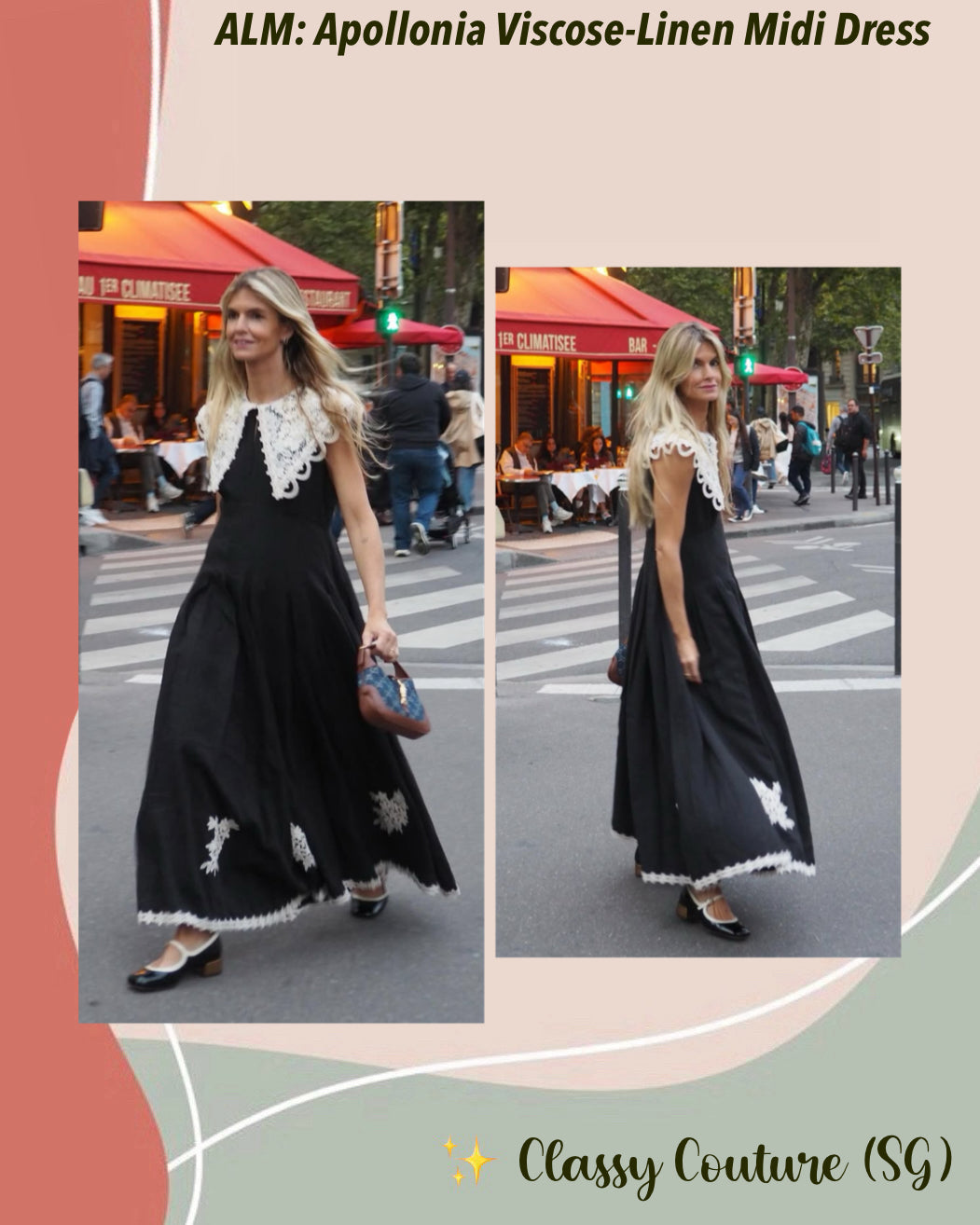 ALM Apollonia Lace Collar Viscose-Linen Midi Dress
