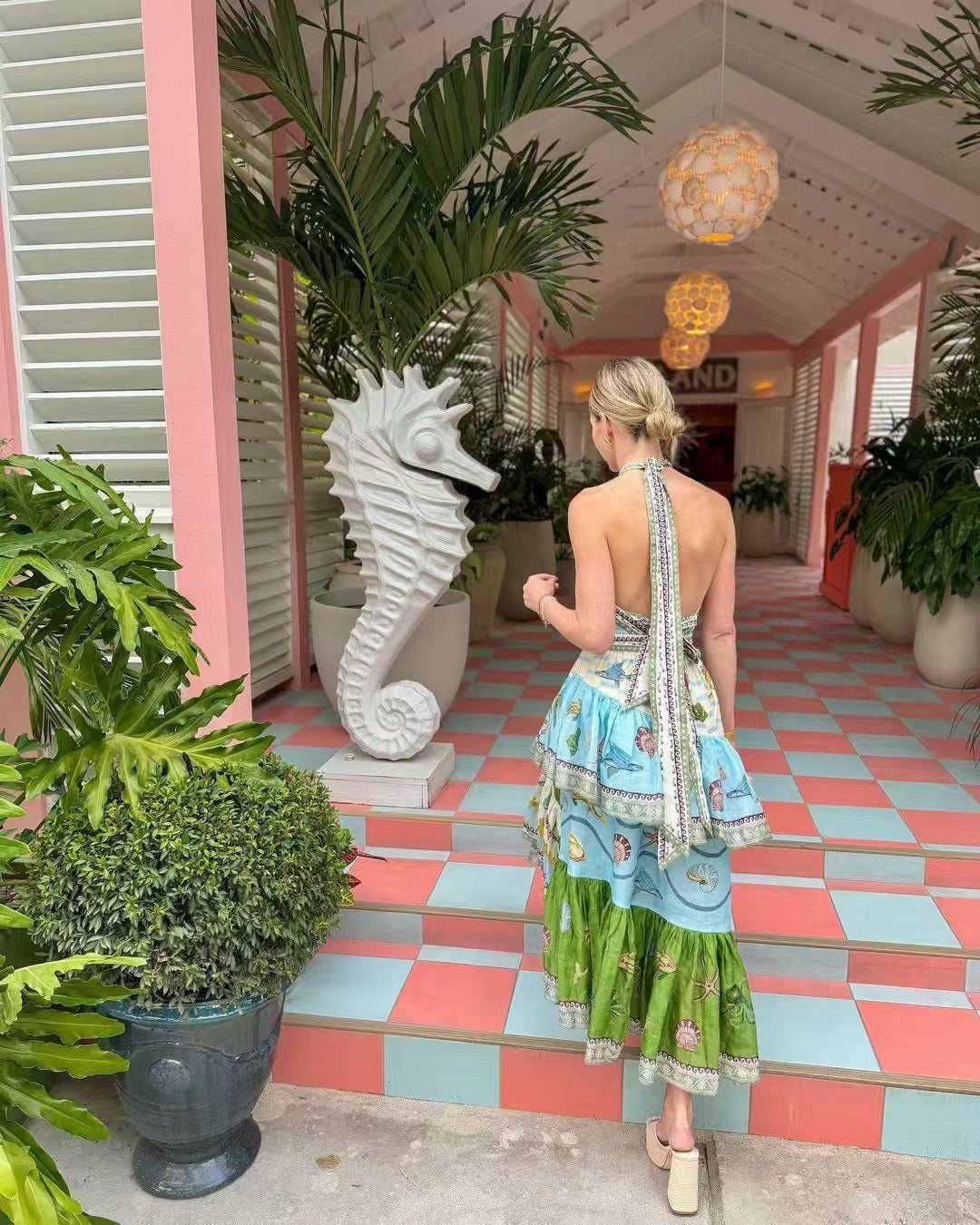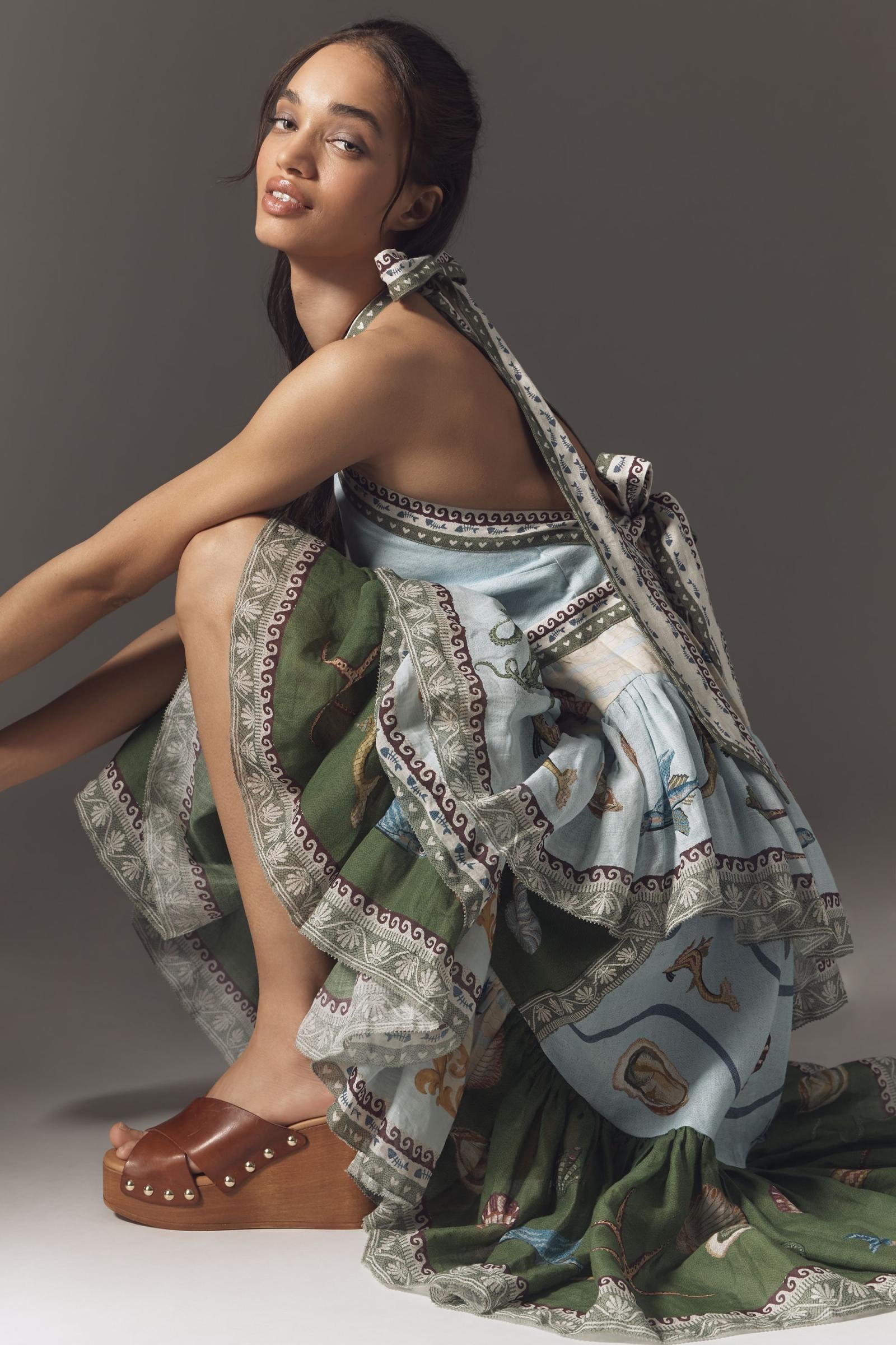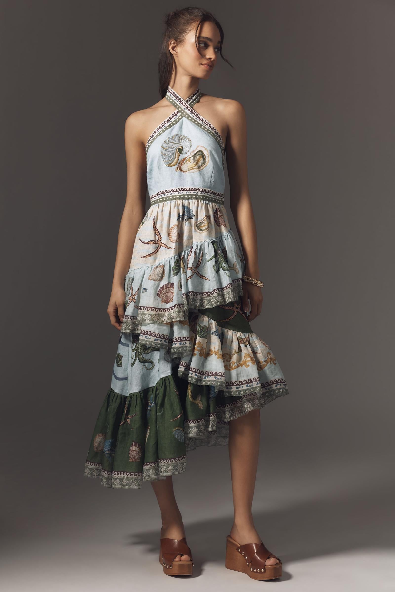 ALM Bath House Tiered Halter Linen Midi Dress
